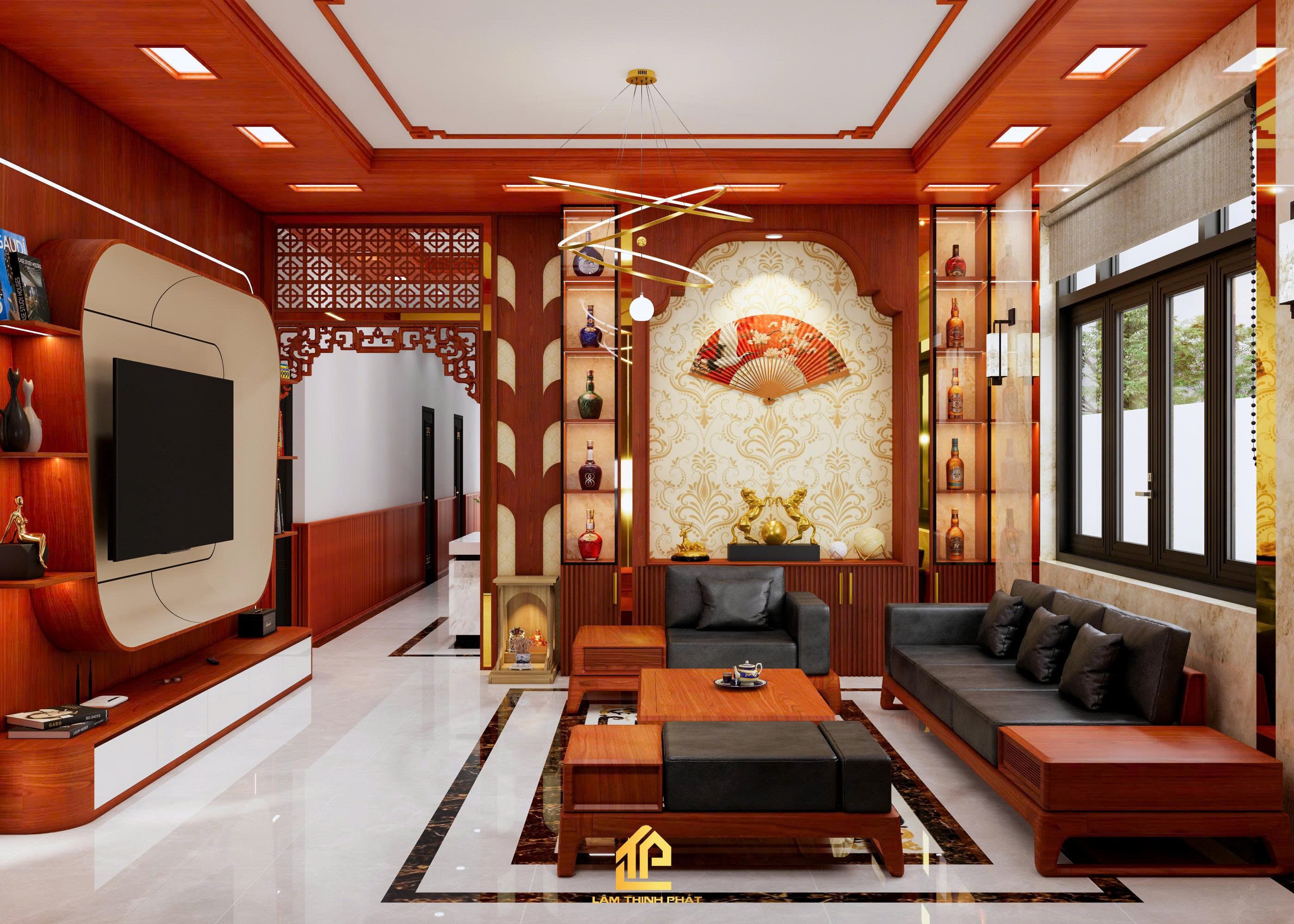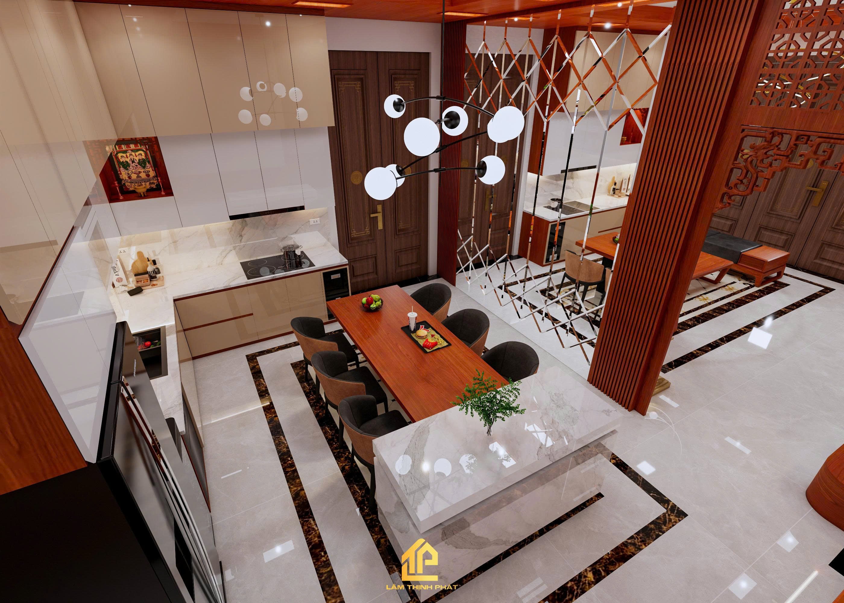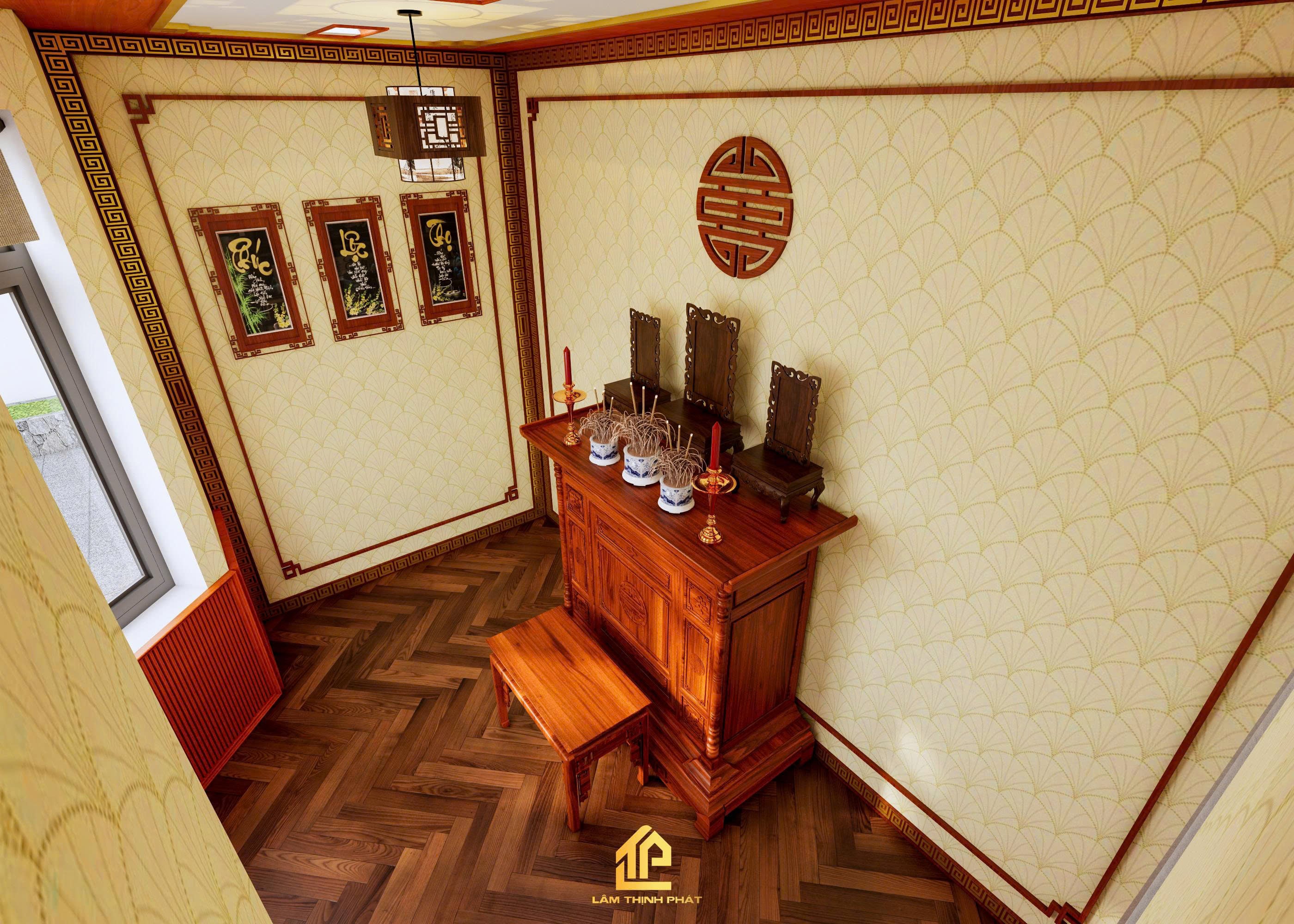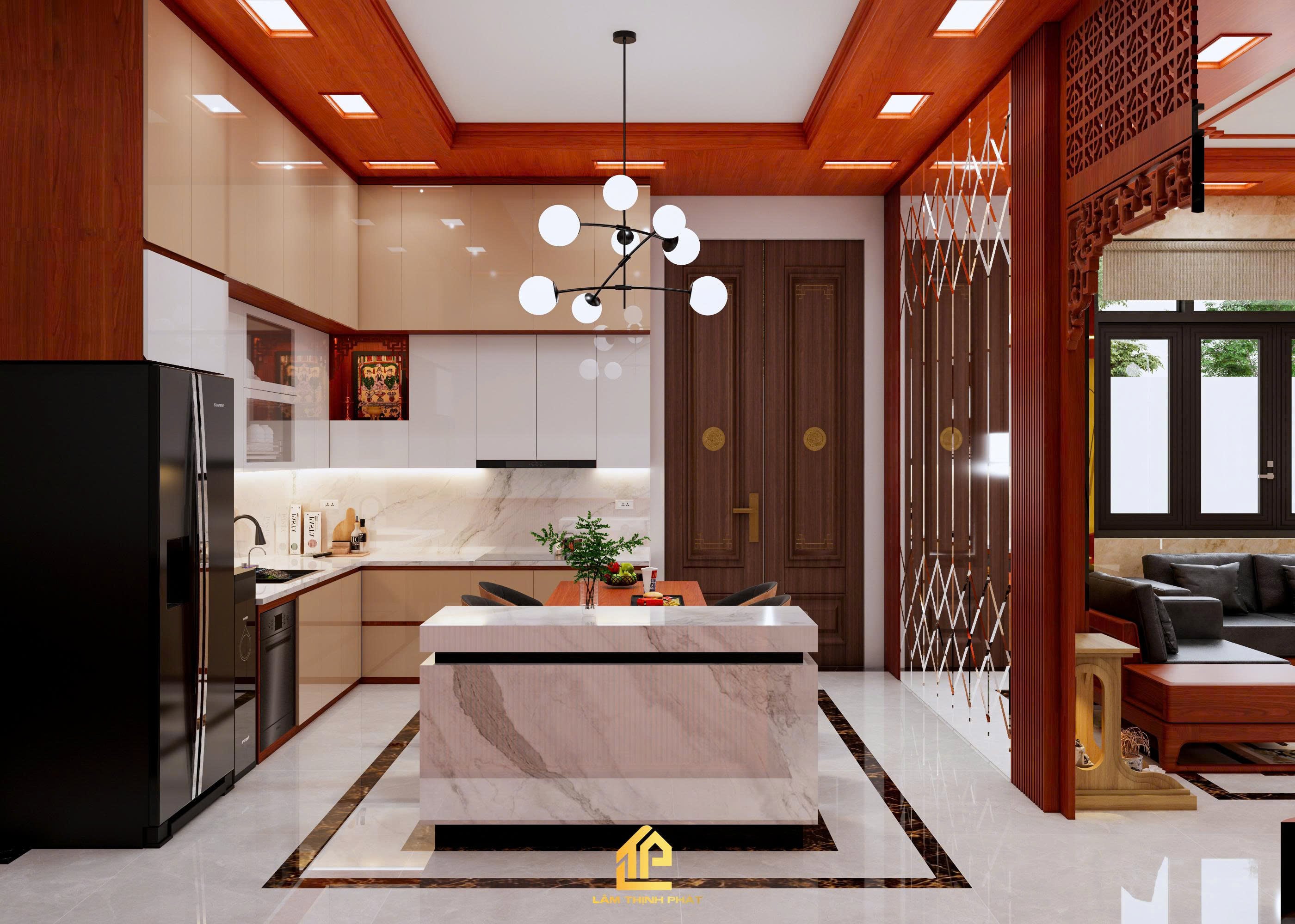 Thiết kế nội thất phòng khách, bếp và phòng thờ