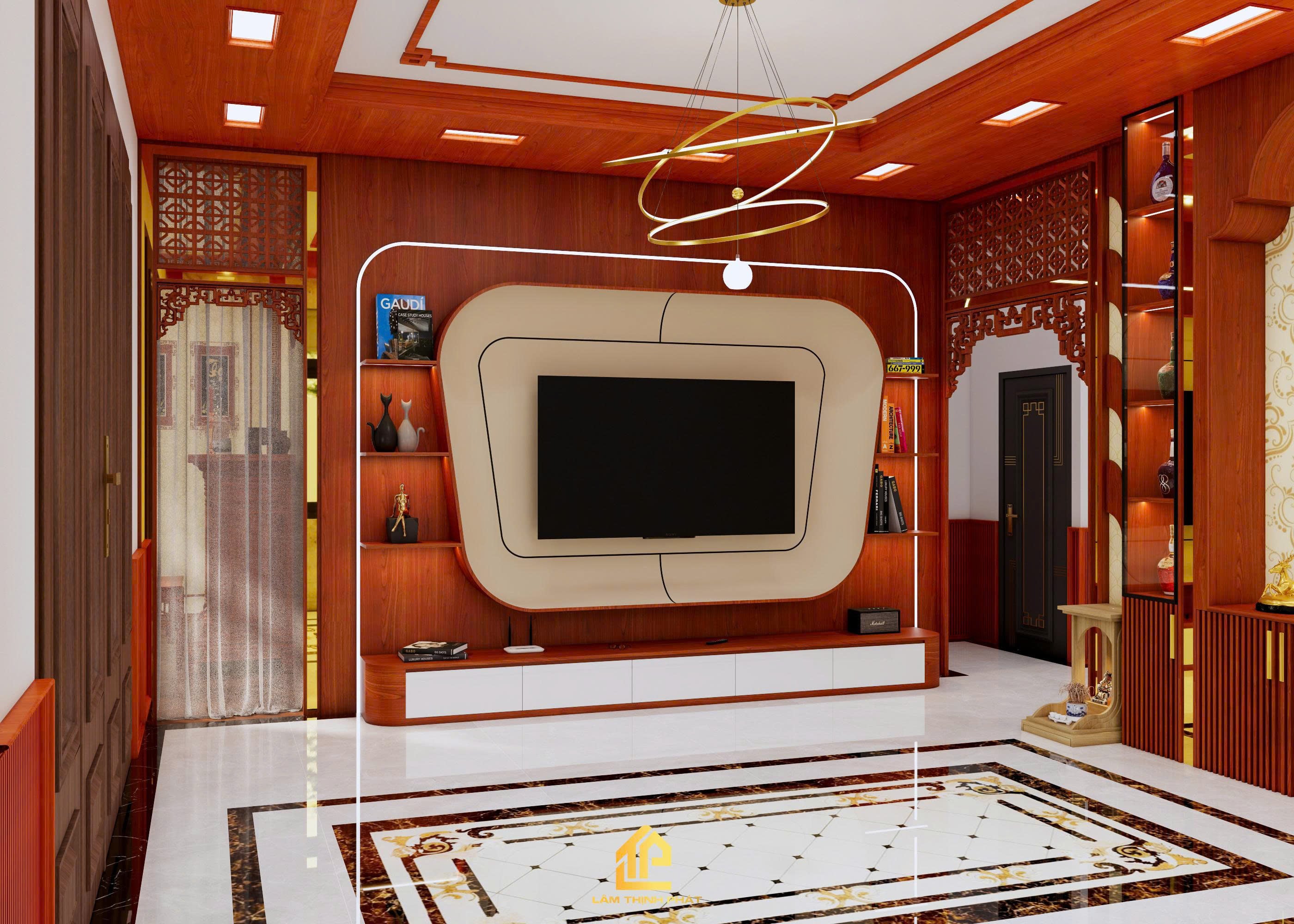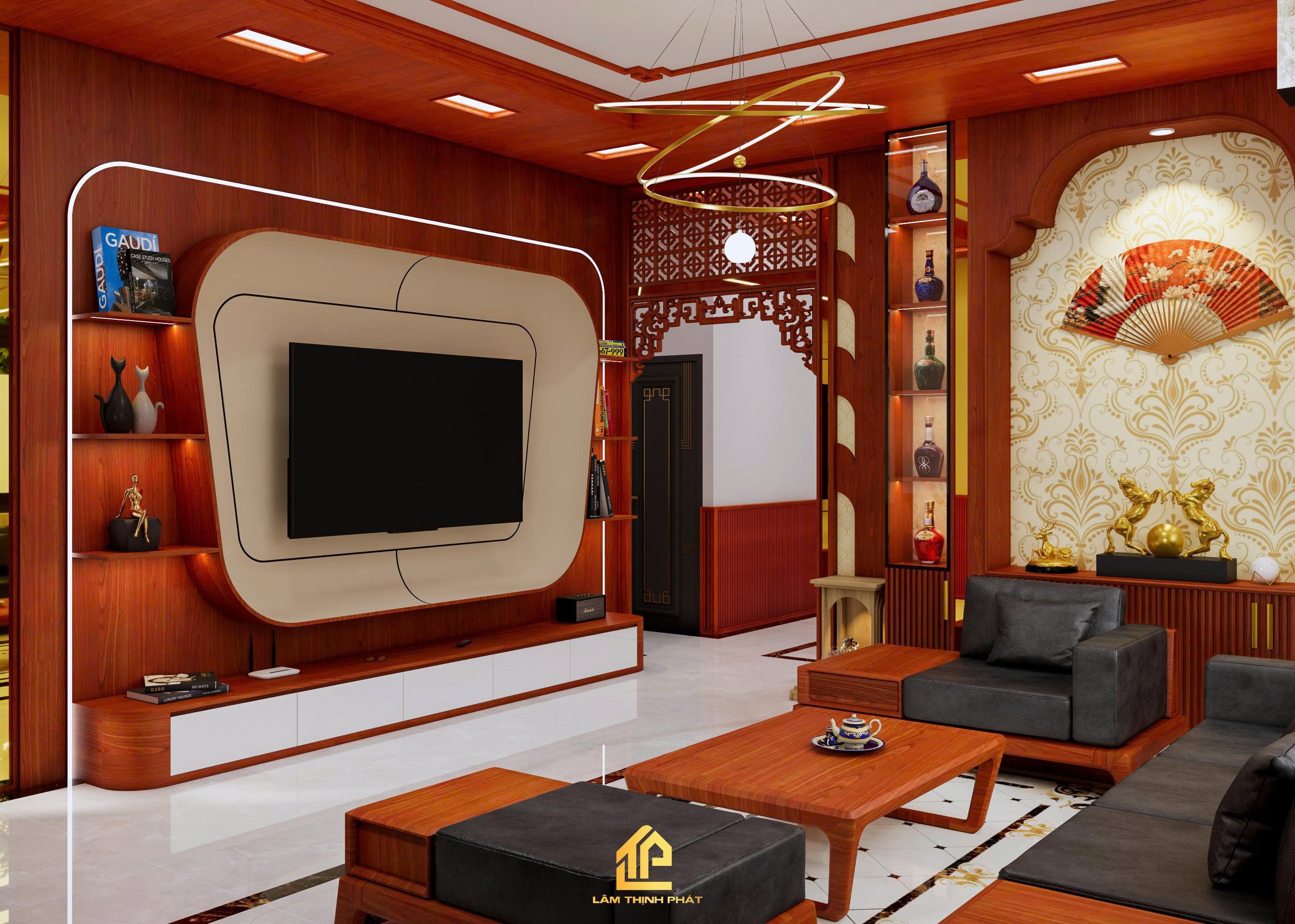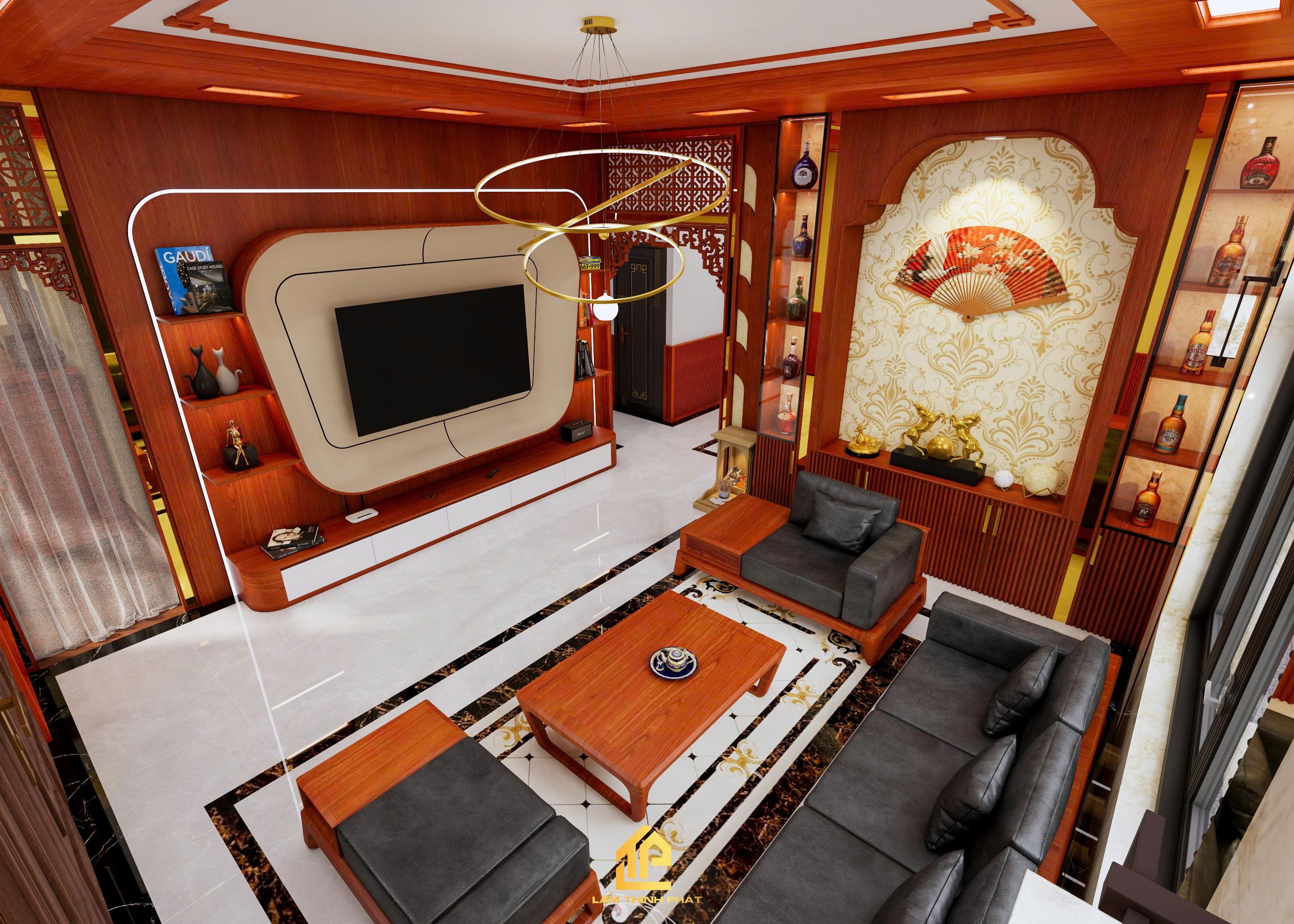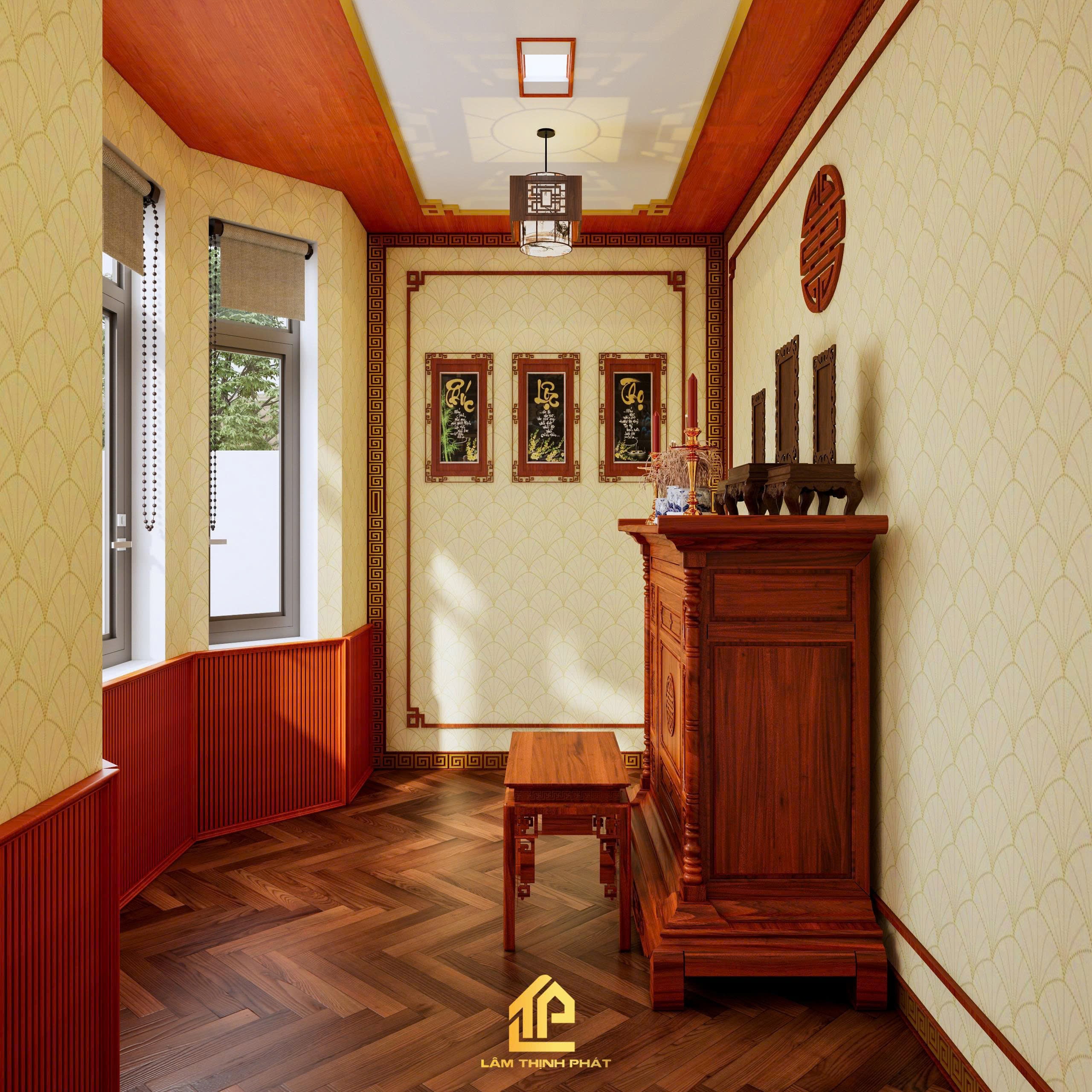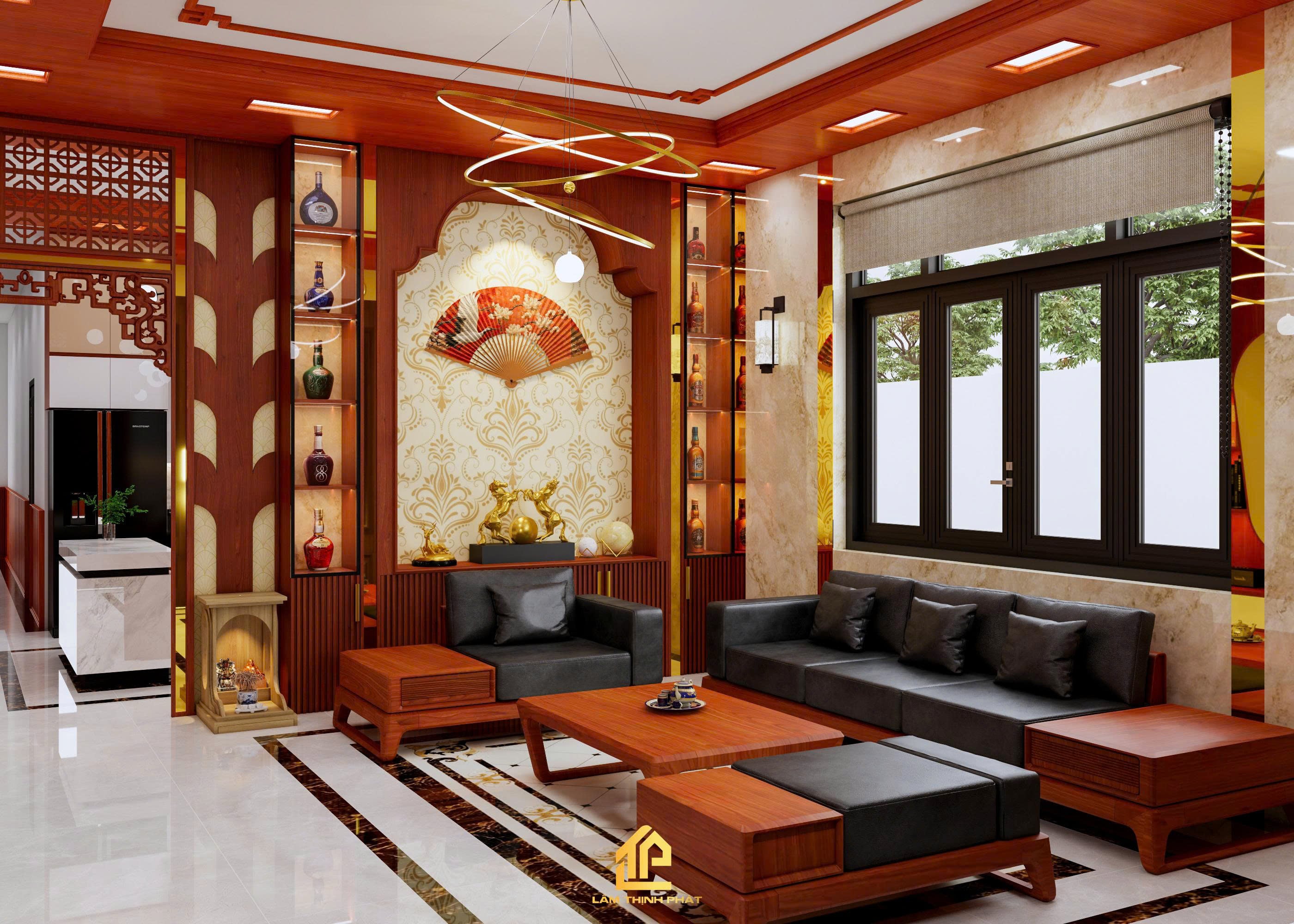 Thiết kế nội thất phòng khách, bếp và phòng thờ