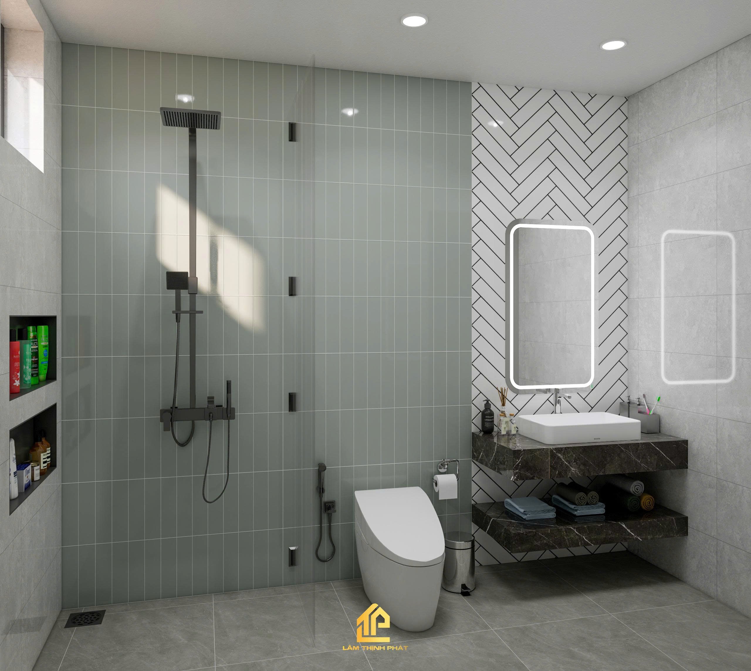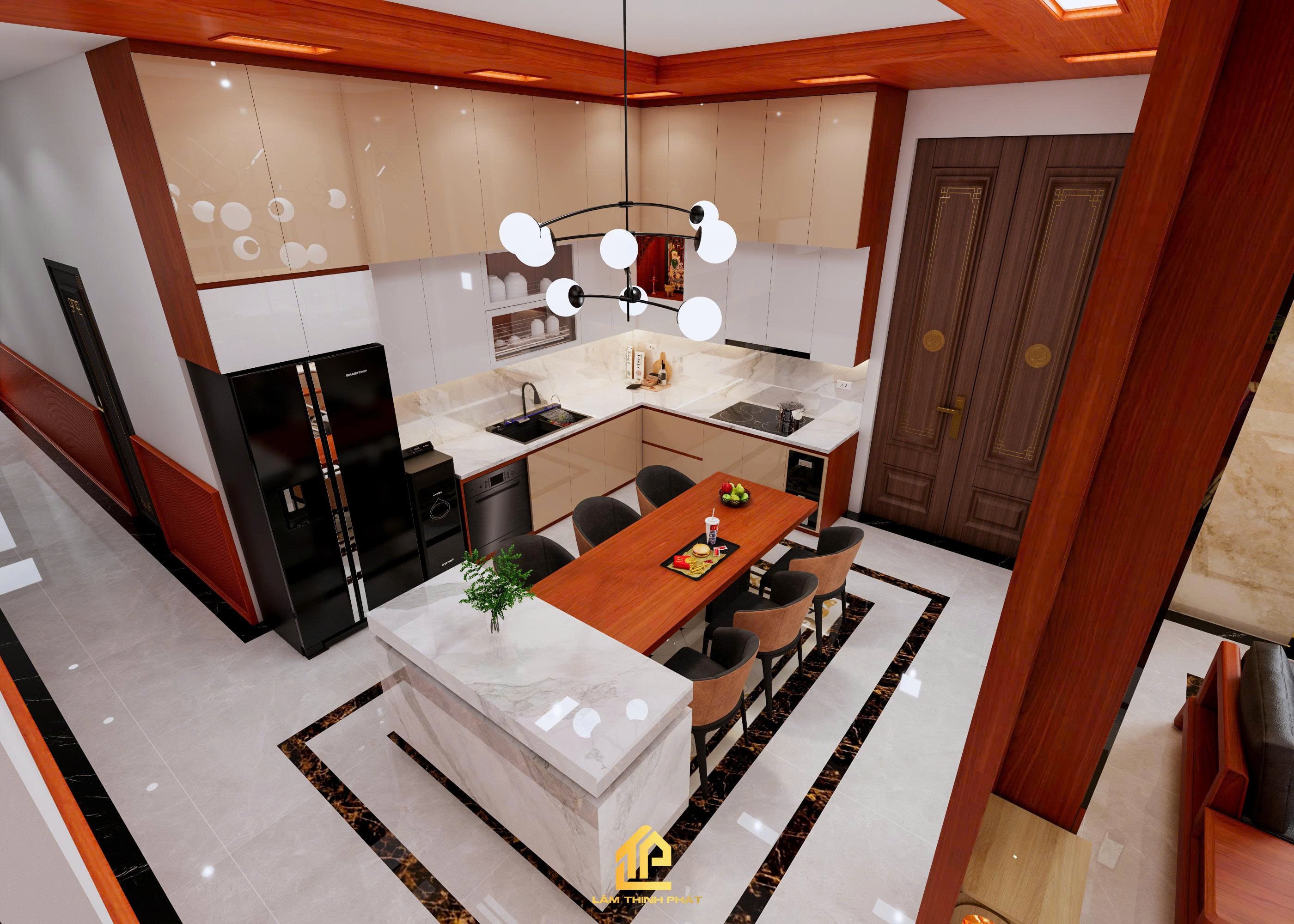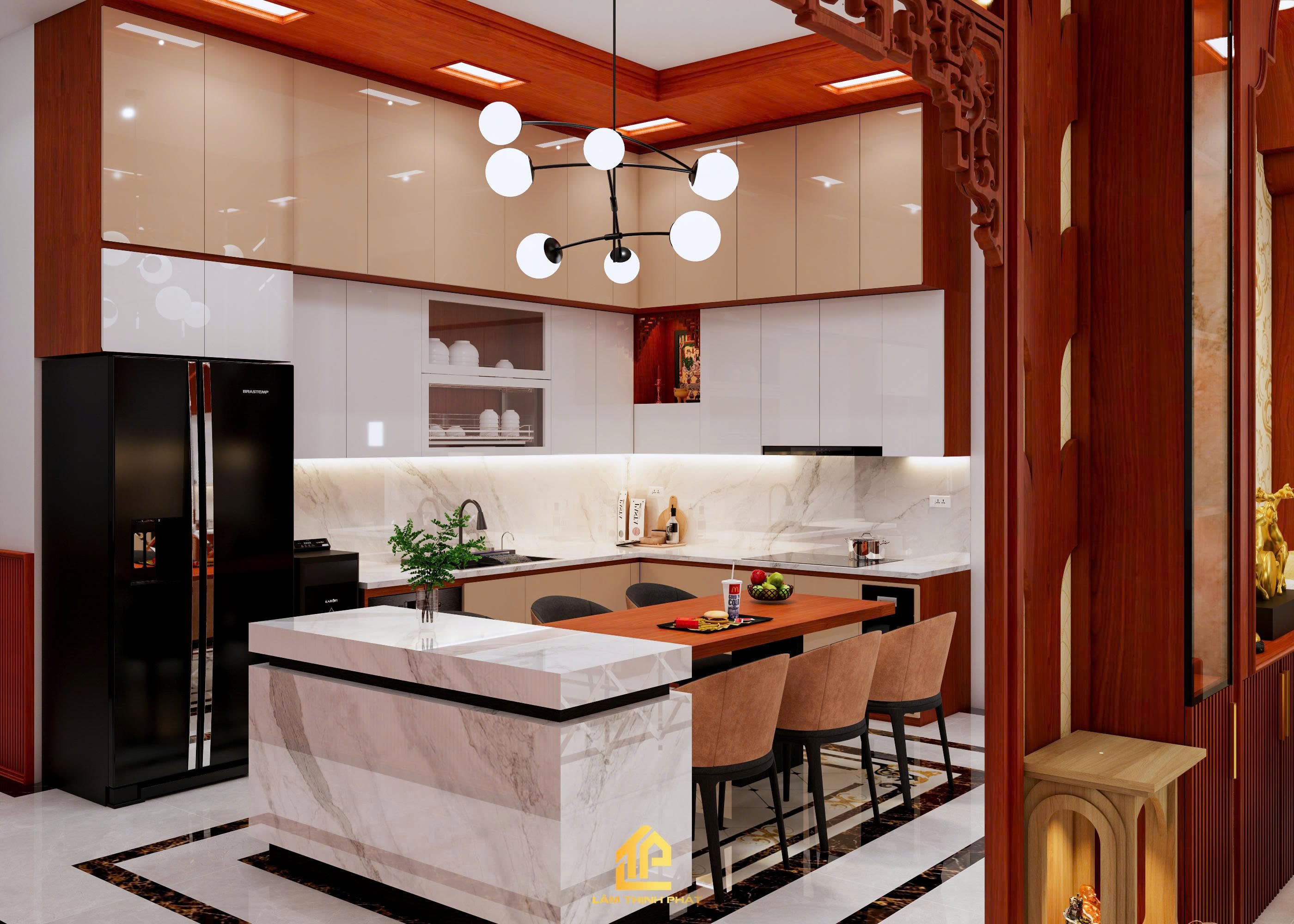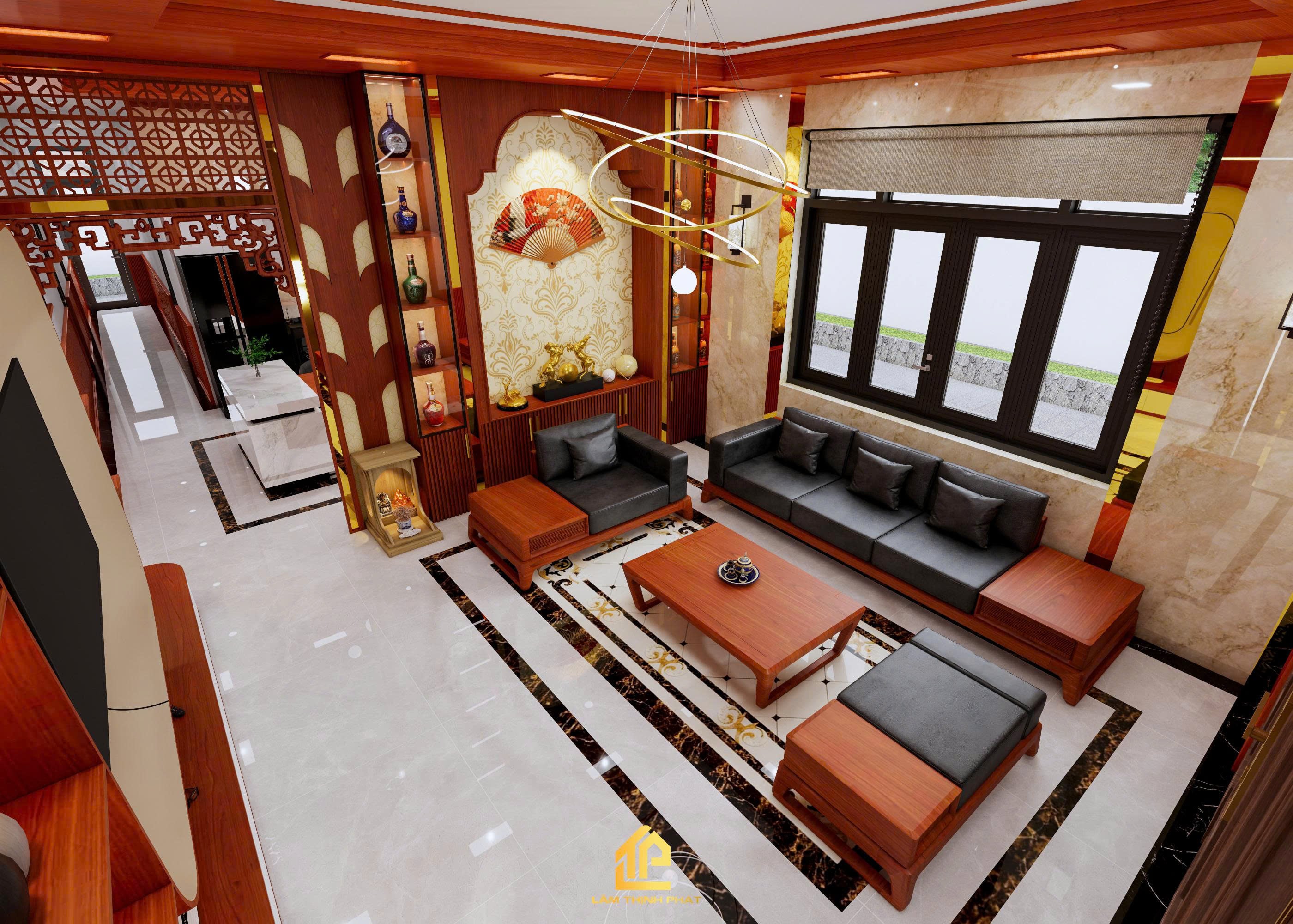 Thiết kế nội thất phòng khách, bếp và phòng thờ
