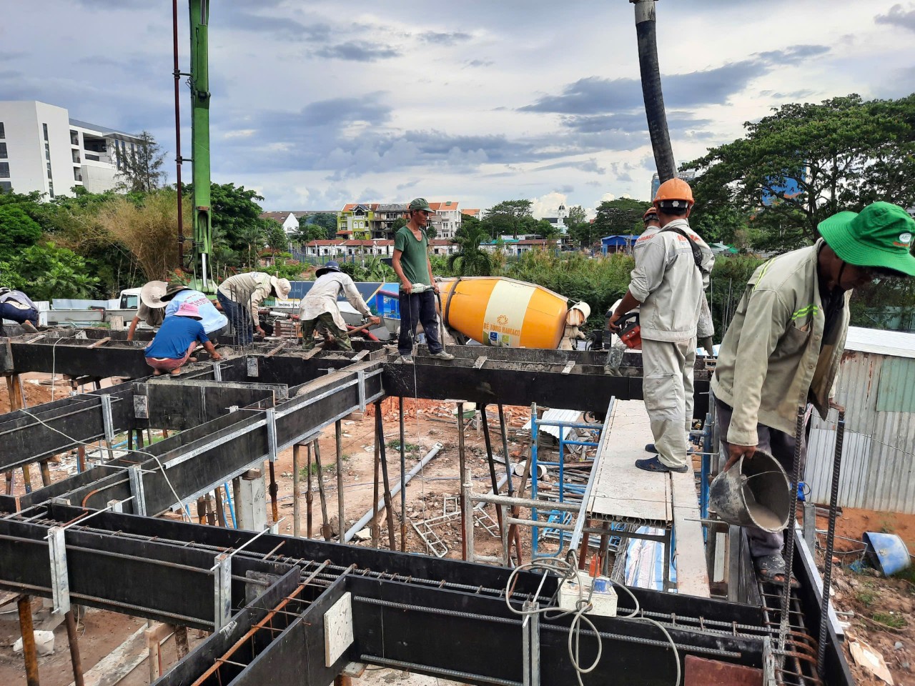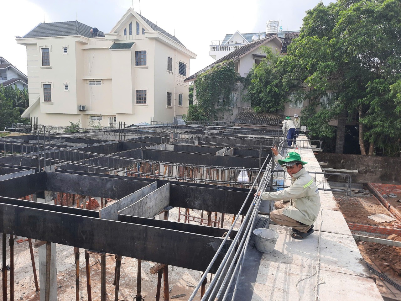 Hiện dự án đang trong giai đoạn thi công hoàn thiện phần ngoài và xử lý chi tiết mặt tiền. Hệ thống giàn giáo, thợ thi công và các hạng mục đang được triển khai đúng tiến độ, đảm bảo chất lượng kỹ thuật và an toàn lao động. Với quy mô nhiều tầng cùng bố cục vững chắc, BIGSun Villa hứa hẹn trở thành điểm nhấn kiến trúc nổi bật trong khu vực khi hoàn thành.
