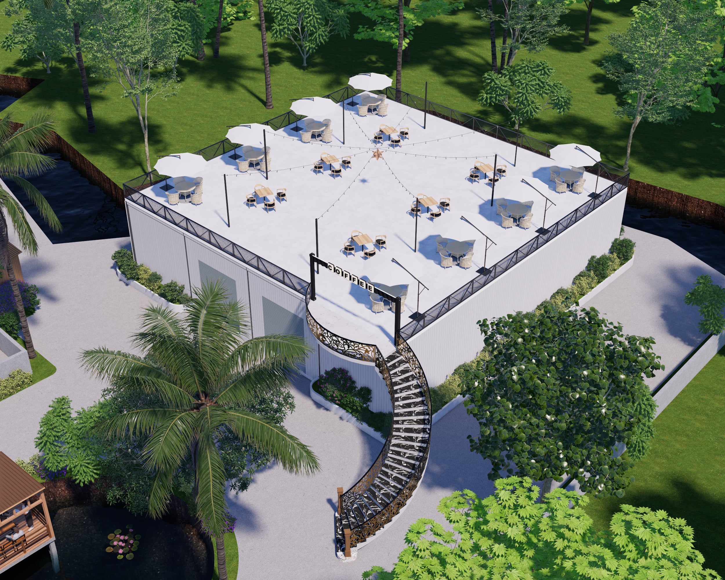 Thi công cà phê sân vườn