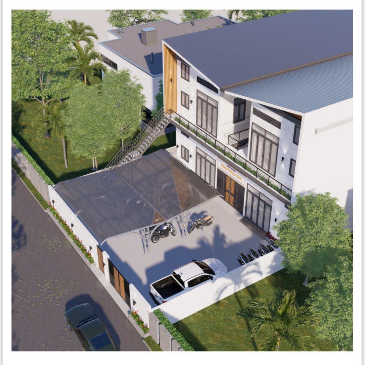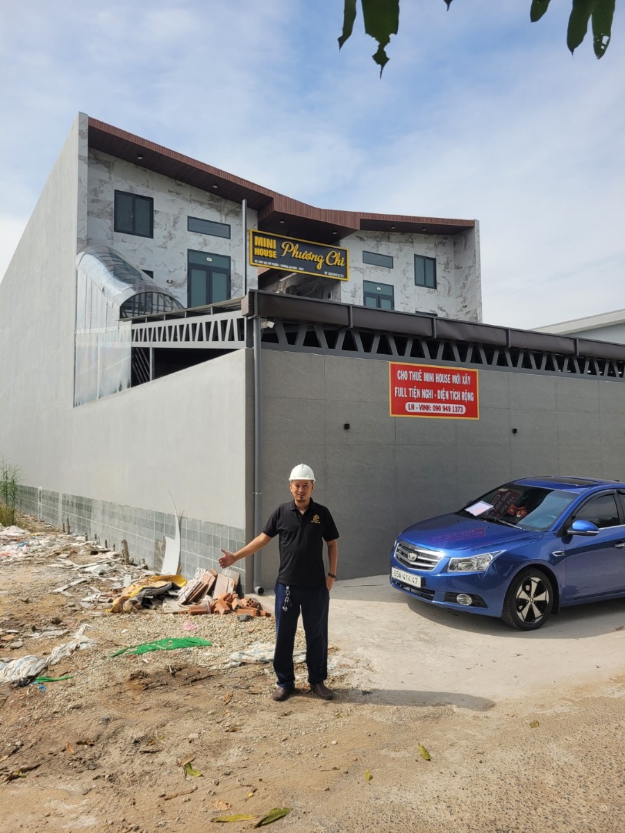 Khu vực sân trước rộng rãi, có mái che và chỗ đậu xe thuận tiện, đáp ứng tốt nhu cầu sinh hoạt và kinh doanh lưu trú. Mini House Phương Chi là giải pháp không gian lý tưởng cho gia đình trẻ hoặc mô hình khai thác cho thuê, kết hợp hài hòa giữa thẩm mỹ kiến trúc và công năng sử dụng thực tế.
