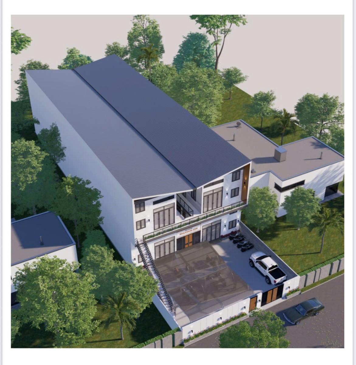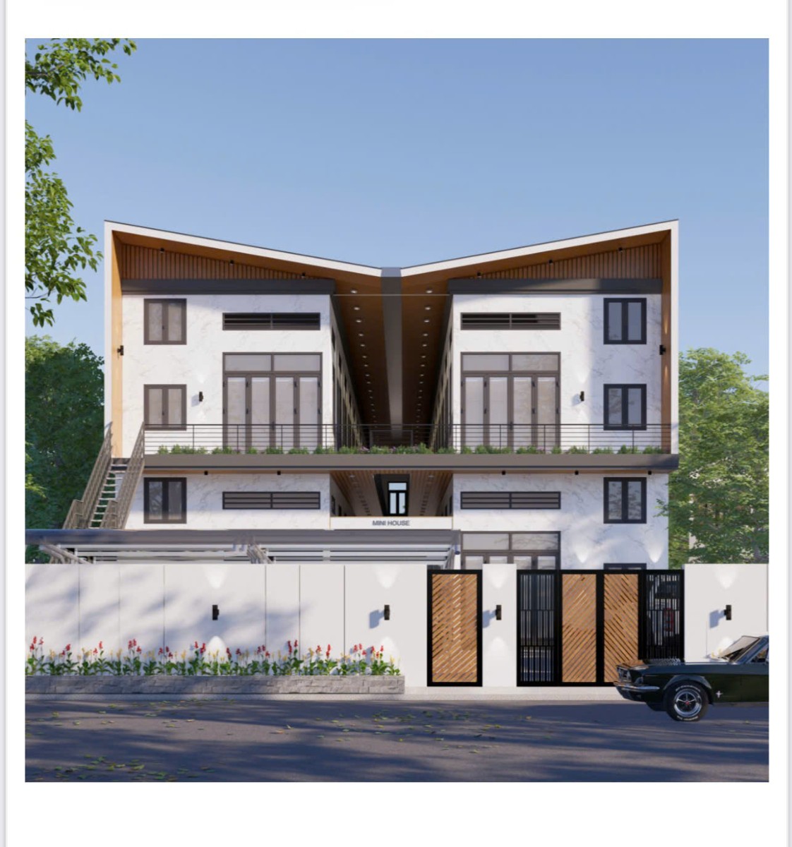 Mini House Phương Chi là mô hình nhà ở kết hợp lưu trú hiện đại, được thiết kế theo phong cách tối giản nhưng đầy tinh tế. Công trình nổi bật với kiến trúc đối xứng độc đáo, mặt tiền khoáng đạt và hệ mái phá cách tạo điểm nhấn mạnh mẽ ngay từ góc nhìn đầu tiên.